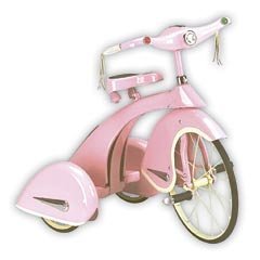 The "retro" movement is sweeping the country and now you can be a part of it with our incredible Sky Princess Tricycle! Fashioned exactly after the original Sky King Trikes from 1936, these amazing replica's are sure to be a collectors item in the years to come. Designed for beautiful function as well as safety, this classy heavy-gauge steel tricycle comes complete with dazzling pink powder coat finish, chrome detailing, grip tassels, sealed ball bearings in the front wheel, solid rubber tires and an adjustable coil-spring seat. This beauty even comes with a functional headlight!
